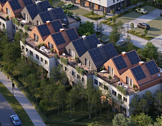 Wszystkie budynki w Vista Forest zostały wyposażone w ekologiczne rozwiązania dostępne już w standardzie. Pompy ciepła, panele fotowoltaiczne, ogrzewanie podłogowe i system retencji wody deszczowej nie tylko zwiększają komfort codziennego życia, ale też realnie obniżają koszty przyszłej eksploatacji.